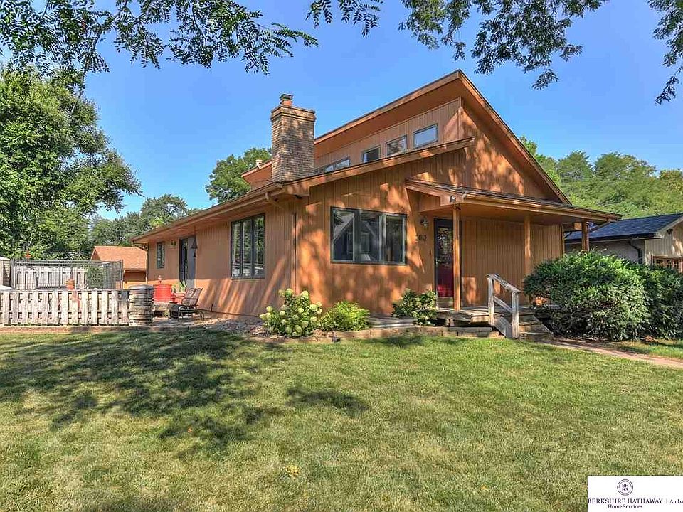Contract Pending. On market for back up offers only. Truly a hidden treasure. This unique, cedar sided, custom ranch home is nestled in secluded historic Bellevue. Watch the Eagles soaring and sunrises over the Missouri River from high on the bluff. Quality throughout this lovely 4 bed, 3 bath home. Enjoy the open concept floor plan, new top down/bottom up blinds and wood floors throughout. Updated kitchen w/granite countertops, large center island & stainless steel appliances. The living area is sun lit by east and south exposure, new efficient gas fireplace insert set in a beautifully bricked fireplace. Three spacious bedrooms upstairs bathed in southern sun-light from one continuous dormer with 11' ceilings. Large main level laundry/mudroom with access to the backyard and garage/workshop. New whole-house water filtration & softener system. Amazing fully finished, basement that sports a huge built-in bar & wood burning stove, and ample storage.