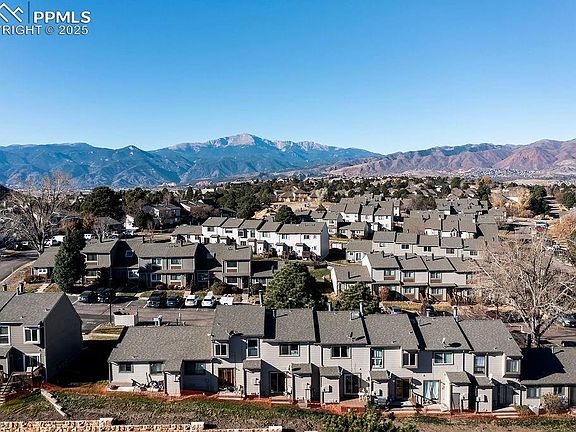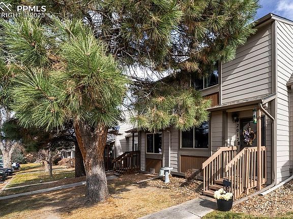 Move right into this well cared for 2 bedroom, 2 bath, 1063 square foot two story townhome featuring thoughtful updates and a warm, welcoming feel throughout. Brand new wood deck stairs lead you to the front entrance. Inside, the living room or dinning room feels inviting with a wood burning stove newly updated with a trending colored stone base, built in shelving accents & large front windows that fills the space with natural light & views of the gorgeous mature trees. The kitchen offers plenty of cabinet storage, newer stainless appliances & a spacious countertop facing both the kitchen and family room, ideal for barstools & convenient eat in use. A fully updated half bath is located on the main level for convenience & guests. The family room features a walk out glass door opening to the back area, along with an attached outdoor storage closet for added space. The complex is currently installing a beautiful new stone accent retaining wall and fencing, enhancing the overall privacy and aesthetic of the community. Upstairs, the primary bedroom connects to a shared bath updated with attractive tile flooring. The full size washer and dryer are conveniently located on the upper level. A skylight in the upstairs hallway brings in even more natural light & the entire home has been freshly painted for a clean, move in ready finish. This unit also includes central air conditioning, a rare feature in the community & a perk for year round comfort. An owned designated parking spot sits directly in front of the unit, with additional guest parking located throughout the complex. Conveniently close to Academy Blvd., you’re just moments from shopping, local coffee, gyms, USAFA & everyday amenities. Mature trees throughout the community add charm, shade, and help keep utility costs down. Water included with dues. Don’t miss this charming and affordable townhome it’s the perfect blend of cozy living, modern updates & incredibly convenient location. Ready to see it?