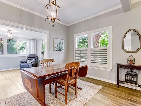 FAR FROM ORDINARY Magical island property with loads of character. PRICE REDUCED! Renovated in 2018. It has an open front living area & a den in the back with its own entrance. The Butler’s pantry, complete with a wine frig., is a nice addition to the kitchen that features a beautiful window looking out over the gardens. 2 bedrooms, 1 bath upstairs, 1 bedroom 1 bath down. Separate 2nd story exterior staircase entry. Relaxing all- seasons sunroom & screened porch. Plantation shutters, smooth ceilings. Located in the county so you can rent short term if desired. No city taxes. Single garage. Carport. Lush natural landscape nearly ½ acre with live oaks & fruit trees. Gardener’s dream with a greenhouse & flower garden. Room for a pool or additional garage. No HOA.
