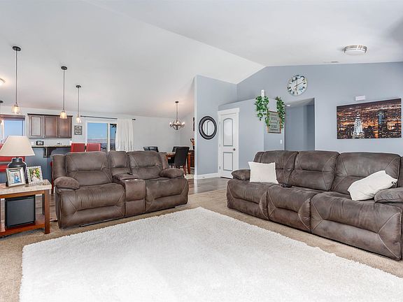 MLS# 265385 Spectacular valley & mountain views from this 2018 built Granger rambler! This home offers a bright and inviting interior with vaulted ceilings and an open concept kitchen, dining and living room, perfect for everyday living and entertaining your guests. You will enjoy preparing all your meals in this fantastic kitchen that features beautiful granite countertops, stainless steel appliances, island/breakfast bar, pendant lighting, wood cabinetry, pantry, and dining area with access to the patio. You will also find a laundry room, 3 bedrooms and 2 bathrooms, including a wonderful owner’s suite with spacious closet, dual sink vanity, soaking tub and shower. Step outside to a partially fenced yard with a covered patio area, where you can take in your beautiful surroundings and magnificent views. This home comes complete with a comprehensive home inspection and a 1 year home warranty!