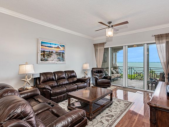 LUXURY, TOP FLOOR, DIRECT RIVERFRONT living in desirable SOUTH COCOA BEACH! EXCLUSIVE MAGNOLIA BAY on the Banana River with the Ocean just steps to the east! 3 bedrooms, 3 baths, 10 ft. ceilings, glossy wood flooring & tile, impact sliders & windows, electric roll down storm shutters on private balcony. Kitchen/baths have wood cabinetry & granite plus stainless appliances. TWO car garage parking under building with HUGE (11' x 17') private storage. Incredible sunset views in quiet, peaceful setting! This complex is known for quality construction with extremely strong Financials & Reserves, secure lobby, community pool & hot tub, riverfront pier, community room & fitness room. If you're seeking quality, a more tranquil, coastal lifestyle yet close to area restaurants and International Airports this is it! Transferrable Home Warranty available too.