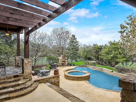 Resort-style living on the golf course! This stunning Drees custom home overlooks the 11th fairway of the UT Golf Club. Nestled on a large cul-de-sac, enjoy your own private backyard oasis with pool and spa, multiple patio areas, fireplace, and built-in kitchen. Inside is equally stunning with hand-scraped wood floors, plantation shutters and floor-to-ceiling glass windows flooding the interior with natural light. The Chef's gourmet island kitchen opens to the two-story family room and features stainless steel appliances, granite counters, breakfast nook and bar. A convenient butler's pantry ties the kitchen and formal dining room together. After a busy day, retreat to the luxurious master with large seamless glass shower and double vanities. There is another bedroom with full bath on main, perfect for overnight guests. The 2nd level accommodates 3 additional guest rooms, spacious game room and media room, complete with a bar area. This enchanting retreat is in acclaimed Leander ISD.