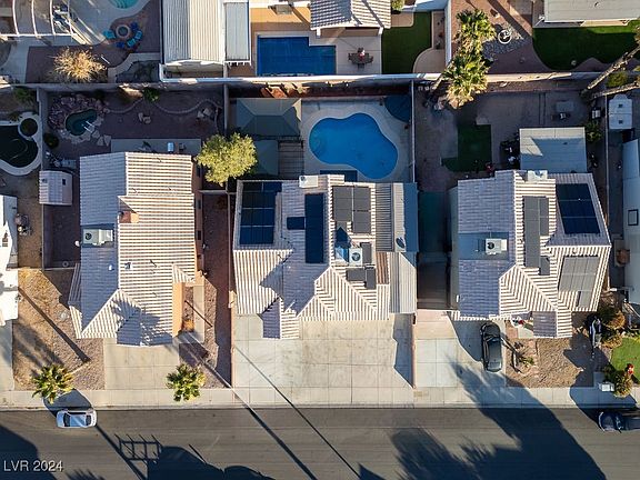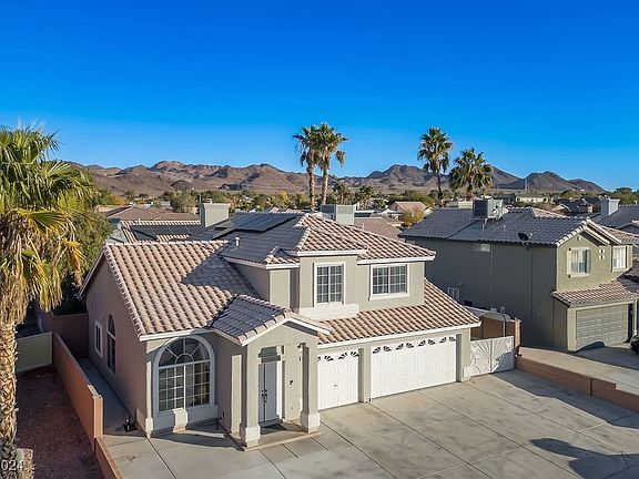 A rare gem. No HOA fees to contend with, this property boasts solar panels owned outright, an in-ground pool, and an above-ground spa less than a year old. The three-car garage features an epoxy floor and ample storage. Situated adjacent to John Dooley Elementary and River Mountain Park, this residence offers a backyard oasis. The expansive patio cover and sparkling pool create an ideal setting for relaxation. The interior features four bedrooms, three bathrooms, a separate family room, and living room. The kitchen is characterized by stone countertops, recessed lighting, and included appliances. A bedroom and bathroom are conveniently located downstairs. The primary bedroom and bathroom have been updated with designer elements. For enthusiasts of cars and toys, the property offers a three-car insulated garage with 220 power, two interior storage rooms, and covered RV parking at the front of the home.