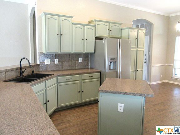 REMARKABLE FAMILY HOME WITH MANY UPGRADES IN THE POPULAR KNIGHTS RIDGE SUBDIVISION IN HARKER HEIGHTS. THIS WONDERFUL HOME IS IN AN ESTABLISHED NEIGHBORHOOD AND HAS FANTASTIC CURB APPEAL WITH A FRONT SITTING PORCH NESTLED BEHIND BEAUTIFUL MATURE LIVE OAK TREES. WALK IN THIS LOVELY 3/2/2 HOME AND NOTICE A LARGE DEDICATED OFFICE BEHIND PRETTY GLASS FRENCH DOORS. LIVING AREA IS EXPANSIVE AND IS HIGHLIGHTED BY A LARGE BRICK FIREPLACE. DREAM KITCHEN WITH LOTS OF COUNTERTOPS AND CABINETS, BREAKFAST BAR, ISLAND, INFORMAL DINING, PANTRY, AND AN OPEN VIEW TO THE LIVING AREA. MASTER SUITE IS EXPANSIVE WITH A LARGE WALK IN CLOSET, SEPARATE VANITIES, HUGE JETTED TUB AND A SEPARATE SHOWER. THE GREAT OUTDOORS BOASTS A LARGE COVERED PORCH WITH TWO FANS THAT'S PERFECT FOR GRILLIN AND CHILLIN. HUGE BACK YARD FOR THE KIDDOS AND PUPS SURROUNDED BY A WOOD PRIVACY FENCE. UPGRADES INCLUDE 2023 ROOF W/LIFETIME WARRANTY, RECENT PAINTING OF INTERIOR, DISHWASHER, VINYL PLANK FLOORING, AND AN ADT SECURITY SYSTEM.