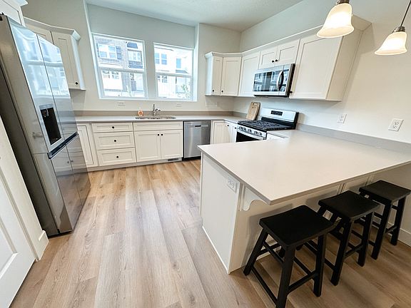 Fully furnished townhome with vaulted ceilings, quartz kitchen, stainless steel appliances, and a 70" 4K TV. Primary suite with walk-in closet, double vanity, and glass shower. Includes washer/dryer, 2-car garage with EV charging, and access to pool, gym, pickleball, and more. Minutes from Silicon Slopes, I-15, shopping, and dining. No pets or smoking/vaping.
