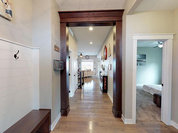 Amazing 5 bedroom, 3 bath, over sized 3 car garage, ranch home. This home features over 2800 sqft of finished space with 10 ft ceilings on the main level and 9 ft ceilings with walkout lower level. You will fall in love with the large picture windows with custom blinds, granite countertops, upgraded appliance package hardwood floors, tile throughout, covered main level deck that overlooks a fully fenced in back yard. The lower level has a wet bar, 2 bedrooms, full bath, family room and lots of storage. Make your move to Ankeny Today.