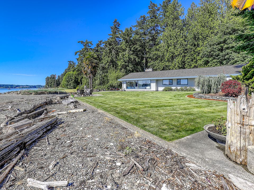 Let the good times roll at this heirloom quality low bank waterfront paradise on legendary Enetai Beach! With its 147 feet of prime small pebble and sand beachfront, 1.10 acre level parcel, natural stream, spectacular and stunning 240 degree views, and total privacy at water's edge, this property is in a league of its own and has not been offered for sale in nearly 40 years. The stout mid-century style 3,000 square foot rambler features hardwood floors, vaulted ceilings, formal living and dining rooms, large rec/game room, and magical views from almost all rooms. The master bedroom with beautifully updated bath occupies the home's NE wing ~ 2 guest bedrooms w/ full bath occupy the home's SW wing. Numerous outdoor entertaining, living, and dining areas!