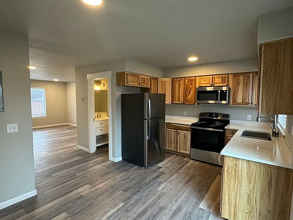 Adorable and newly renovated 2 bedroom/ 1.5 bath apartment in NE Bend. 2 story unit. Close to St. Charles Hospital, Pilot Butte, restaurants, shopping and parks. This unit is light, bright, and open! It features plenty of closet space, vinyl plank flooring throughout, quartz countertops, stainless appliances, and will have a fenced backyard. Washer/dryer in unit. Small dog considered. All rental listings and availability are subject to change without notification. All information is deemed reliable, but not guaranteed. Photos are of a similar unit. We are unable to show occupied properties. We can offer virtual tours when available. Showings of homes once your application has been approved can be arranged.