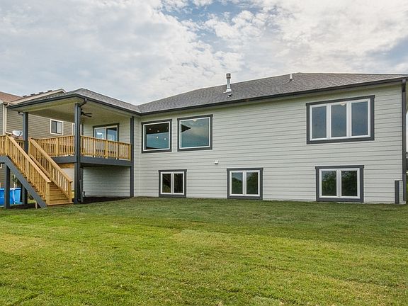 You'll immediately fall in love with this newly constructed ranch-style home on Harvest Drive in Grimes. From the moment you pull up front, until you finish your walk-through, you'll be saying "WOW!" The open space plan on the first floor greets you with amazing hardwood floors. Your eyes immediately go to the white stone fireplace in the living room. On the opposite end you'll discover a gorgeous kitchen space with stunning granite countertops and subway tile backsplash. The adjoining casual dining space includes a sliding door that exits to an elevated, covered deck that looks out over a spacious back yard. A combination mud room/laundry room separates the kitchen from the 3-car attached garage. There's built-in bench/coat locker and you'll love the beautiful tile floor. The master bedroom is on the opposite end of the home and it includes a tray ceiling and en suite bathroom with dual sinks. Vanities include granite countertops and there's a large tiled walk-in shower and a huge walk-in closet. There are two additional nice-sized bedrooms on this level and another full bath with granite countertops. The lower level includes over 1,200 additional living space. Custom built-in shelves and cabinets framing the gas fireplace. Walk up bar with quartz counter including space for bar fridge complete the area and help differentiate this living area. 2 large bedrooms, full bath and vast amount of space for storage in utility area. Plenty of cabinets and closet space to help keep your home tidy and organized.