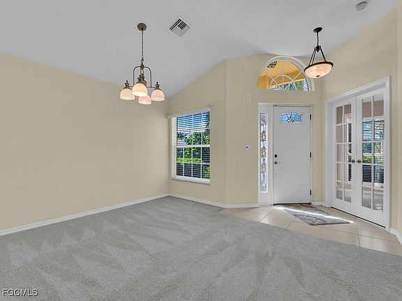 Golf course view single family home and is walking distance from Westminster Amenity center/country club. Recent updates include brand NEW carpeting (2025), hot water heater replaced in 2023, A/C unit replaced in 2022 and all appliances in 2022. The layout of this home is fantastic w/ den/home office off of the foyer w/ French door entry, volume ceilings, great room layout, split bedroom floor plan, spacious kitchen w/ lots of storage & countertop space, breakfast nook, formal dining area, and a large screened lanai. This home is ideal for seasonal or annual SWFL living! Westminster is a gated golf community situated right on the Fort Myers/Lehigh border, and it offers pay as you play golf, plus other wonderful amenities!