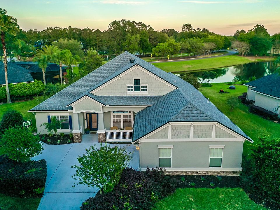 This FIVE BEDROOM home at Heritage Landing at World Golf Village is just a hop, skip, and a jump away from the amenity center! Resort-style amenities are within a few hundred yards, while the home itself feels very private. It's situated on over a 1/3 of an acre lot with mature landscaping and a lake view with no neighbor behind. The spacious feel continues inside with large windows and transoms, triple sliders, and high ceilings. Five generously-sized bedrooms (one is being used as an office), three full bathrooms, and two separate living and dining spaces, provide ample room for hosting large gatherings. And entertaining is a snap with this kitchen - 42" cabinets, a walk-in pantry, miles of granite and stainless appliances. Hardwood and tile floors throughout makes for easy cleaning, too. But if quiet is more your style, this home offers lots of spaces for resting and recharging - the cozy family room fireplace or the back porch are the perfect spots for curling up with a good book or taking in the stunning backyard views. And the primary suite is a retreat in and of itself. It's on the main level with its own access to the back porch and has a large bathroom with separate vanities, water closet, and tub and shower. Guests will be quite comfortable with their own upstairs guest suite with breath-taking views of the lake. Whether you're looking for a resort-style amenities or a quiet retreat or both, this home truly has it all! Heritage Landing amenities include two pools, a splash pad and water slide, a fitness room, sand volleyball courts, tennis courts, a playground, sports fields, basketball courts, and even a firepit with seating for the whole family! Buyer to verify all info important to purchase.