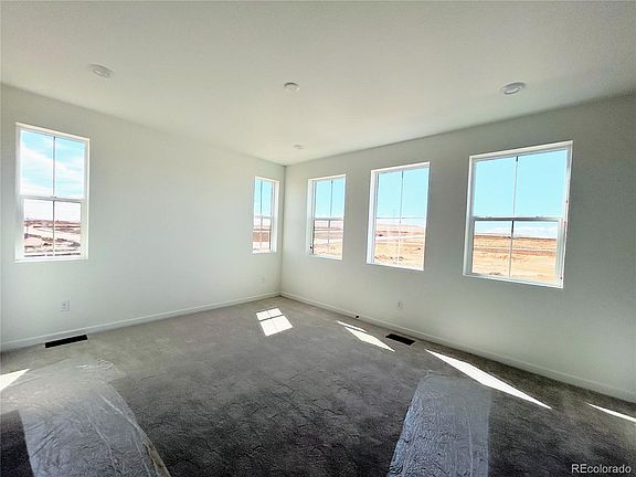 *Ready Now* This beautiful end unit townhome has an open layout with a chefs' kitchen that features a large eat in kitchen island, quartz countertops, upgraded cabinets, EVP flooring, large great room connected to the patio, 1/2 bathroom and dining nook. Upstairs you will find the owner’s suite that features a convenient walk-in closet and an en-suite spa style bathroom. The 2nd and 3rd bedrooms share a Jack-and-Jill style bathroom in between them. The Laundry room is conveniently located near the bedrooms! Situated on the corner this home also features an awesome wrap around porch! Located near the Aurora Sports Park, the Stanley Marketplace, Murphy Creek Golf Course and Gaylord Rockies Resort. Also close to DIA!