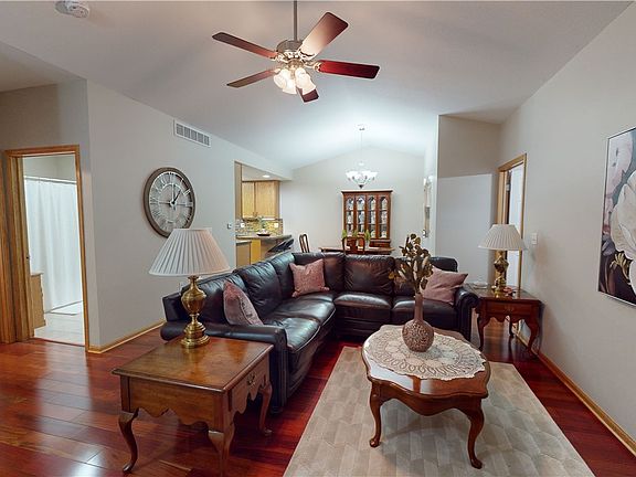 Welcome to this beautiful 2 bedroom, 2 bathroom, zero-entry single story ranch townhome! Located in the quiet SW corner of Ankeny and just minutes away from restaurants, shopping, schools, golf courses, medical services, and more! Get ready to be impressed by this super clean, well maintained, upgraded, move in ready home! You will love the 3/4 Brazilian Cherry Hardwood floors throughout the main living space and natural lighting that comes through. This cozy home offers a large living room with vaulted ceilings, stone fireplace, custom blinds, dining room area, spacious kitchen, laundry room with washer and dryer included, 2 car attached garage, and a bonus room nestled in the back corner of the home. The master bedroom has a calming and relaxing feel with coffered ceilings. Attached is the commodious master bathroom that boasts a tile walk-in shower, private toilet, granite countertop sink area, and a generous walk-in closet. There are stainless steel appliances, tile back splash, and granite countertops in the kitchen, with capacious storage and pull outs. New roof installed in 2022, added insulation in garage area, 98% high efficiency furnace-2011, 14 Seer high efficiency central air-2011, and a privacy fence on patio. This is a must see home! Reach out to your favorite Real Estate Agent to schedule a showing today!