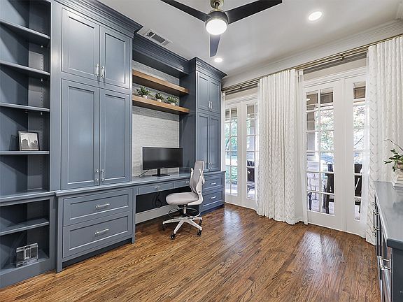 With two private offices, a bonus craft room, a media room, and a dedicated workout room, there’s space for every passion and purpose. A first-floor guest suite offers comfort and privacy for visitors, while the primary suite feels like a true sanctuary—with its sitting area, spa-inspired bath, and private patio overlooking breathtaking sunset views across the backyard.