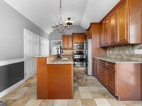 Fantastic four bed three bath home in Woodstock, GA. This home features a living room with a lofted ceiling and a cozy fireplace. The kitchen has an island, stainless steel appliances, and a separate dining room. The primary suite is spacious with tray ceilings and wood floors. The primary bath includes a barn door, a separate tub, and a stand alone shower. The fenced backyard and rear deck are perfect for pets, relaxing, and entertaining. Other highlights include a two car garage, a corner lot, and a firepit.