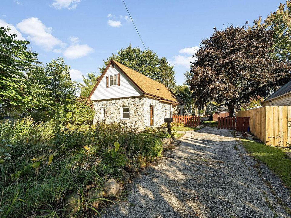 Tucked back from the street and framed by a welcoming garden path, this bright and beautifully maintained 3BR, 2BA Cape Cod offers comfort, convenience, and character. Sun-drenched Living Rm and Dinette feature easy-care ceramic tile floors--perfect for everyday living. Kitchen boasts new flooring and refreshed cabinetry, blending functionality with style. Main-floor bedroom with generous closet and updated full bath for added convenience. Upstairs, you'll find a large Master Bedroom with an oversized closet, a 2nd full bath, 3rd bedroom, and a thoughtfully placed laundry area. Recent updates include windows (2007), roof and gutters (2019), and furnace and A/C (2020). Fenced backyard with a large storage shed. And with no basement, you can rest easy knowing water damage won't be a concern.