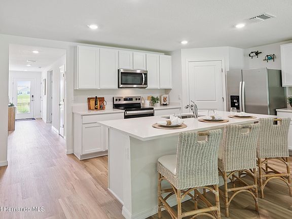 Welcome to a spacious and inviting 4-bedroom, open-concept and all concrete block constructed home where design meets functional elegance. The seamless flow between living areas and the kitchen creates an expansive environment perfect for both daily living and entertaining. The kitchen is a focal point of this home and designed for style and convenience including a stainless-steel range, microwave, built-in dishwasher, and refrigerator. Four well-appointed bedrooms and located in the front of the home and nearby a full bathroom. The primary bedroom features an ensuite bathroom, double vanity, and walk-in closet. The laundry room is complete with a washer and dryer. This residence embodies the perfect harmony of openness and privacy. The Cali is complete with a state-of-the-art smart home system. Pictures, photographs, colors, features, and sizes are for illustration purposes only and will vary from the homes as built. Home and community information including pricing, included features, terms, availability and amenities are subject to change and prior sale at any time without notice or obligation. CRC057592.