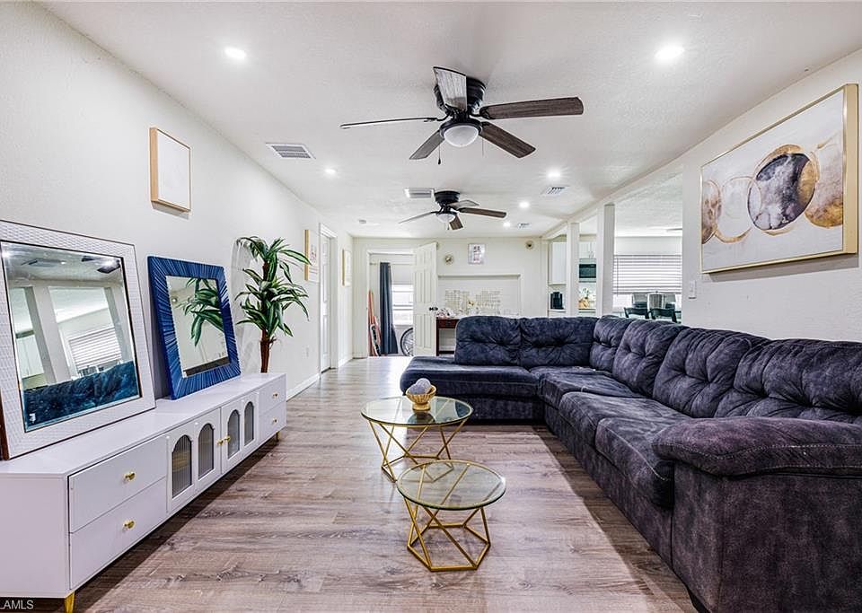 Completely renovated and move-in ready! This stunning 4-bedroom, 2-bath home sits on a desirable corner lot in Fort Myers—just minutes from Downtown and the Caloosahatchee River. With no HOA and no rental restrictions, this property is ideal for both investors and primary homeowners alike. Step inside to an open-concept layout featuring brand new vinyl flooring throughout, fresh interior and exterior paint, and a bright, airy feel thanks to all-new windows and upgraded lighting fixtures. Originally a 3-bedroom, this home has been reimagined to offer four spacious bedrooms with generous closet space. The modern kitchen is a true highlight—boasting quartz countertops, soft-close wood cabinetry, and stainless steel appliances—flowing seamlessly into the living space, perfect for entertaining. Both bathrooms have been completely redone with quartz-topped vanities, sleek tile tub/shower combos, new tubs, toilets, and finishes. Enjoy the peace of mind that comes with all new electrical, plumbing, and a new roof within the last year. Additional upgrades include a new water heater, new stackable washer and dryer, and new framing and insulation. The laundry area doubles as a flex space, ideal for a home office, playroom, or bonus room. The lot offers room for a pool and plenty of outdoor potential. Located close to top dining, shopping, and entertainment, this home checks all the boxes. Don’t miss your chance to own a fully upgraded home with modern finishes and unbeatable flexibility!