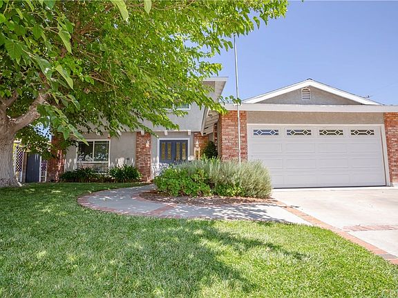 This beautiful home is nestled on a quiet street in a great Canyon Country. Its lush lawn, colorful planters, Wooden flooring, and Carpet in each room. The living room is bathed in natural light from a large picture window and is enhanced further by a lighted ceiling fan, recessed lights, and cozy fireplace. The family's cook is going to truly appreciate the remodeled kitchen's with recessed lights, abundant cabinets, quartz counters, durable basin stainless steel sink, plus the convenience of the adjoining dining area. 4 bedrooms ; The master suite has a beautifully appointed private bathroom. A total of 2 bathrooms. Functionally located laundry. Energy efficient dual pane windows and. Central air & heat for year-round comfort. privacy fence, covered entertainer's patio, large open patio, 2 car attached garage. NO MELLO ROOS and NO HOA. Please, visit the visual Tour.