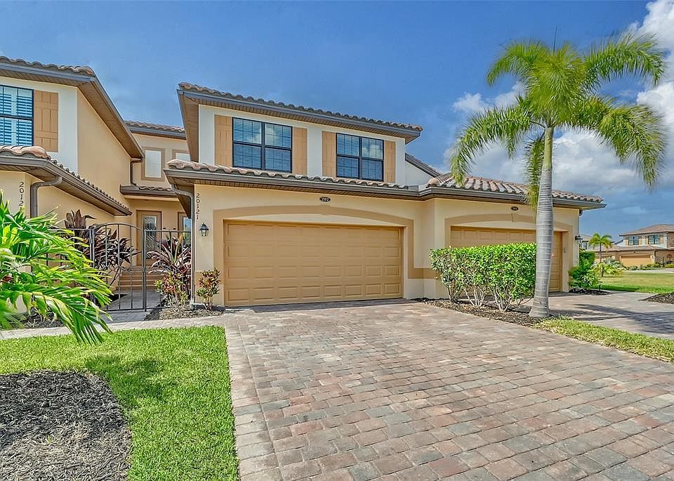 Motivated Seller. Your first quarter of HOA dues paid by seller. Welcome to the gated community of Gran Paradiso! This coach home boasts 2187 square feet of living. The lead glass front door opens into a welcoming foyer that features soaring ceilings, crown moldings, and additional recessed lights. Once upstairs you are greeted by a large living space that is perfect for entertaining and everyday living. The kitchen is a dream with ample cabinet storage and beautiful granite countertops. A large dining area is ideal whether you are hosting guests or having a quiet meal at home. Just off the living room is an oversized screened lanai that acts as a peaceful sanctuary, giving you total privacy with a South serene view of the pond... perfect for watching birds and relaxing. The primary suite is large on space and flooded with light thanks to a large window and a set of sliders that also lead out to the lanai. Two walk-in closets and a large primary bathroom with dual vanities and a separate water closet are sure to impress! On the opposite side of the home, you will find two generous sized bedrooms with ample walk-in closet space. One of the bedrooms includes two Queen size Murphy beds to host guests easily. Second guest bedroom also has a Queen size Murphy Bed with shelves. A spacious second bathroom that is perfect for guests, and a convenient in-unit laundry room. The 3-car tandem garage gives you that extra space for housing all of your toys along with an extra-long driveway. Gran Paradiso enjoys 5 STAR AMENITIES, such as a grand guard gated entrance, a resort style pool and hot tub, impressive clubhouse with library, card and billiard rooms, state of the art fitness center with fitness classes, his and her locker rooms with saunas and steam rooms, tennis courts, pickleball courts, and so much more! Gran Paradiso is golf cart friendly and features fabulous neighborhood events. Located minutes to the new town center of Wellen Park, the CoolToday Park Stadium... home of the Atlanta Braves Spring training camp, historic downtown Venice, and the beautiful beaches along the Gulf of Mexico, this location is perfect for enjoying everything the Venice area! New flooring in bedrooms (June 2024), new exterior paint and lanai screens (May 2024)