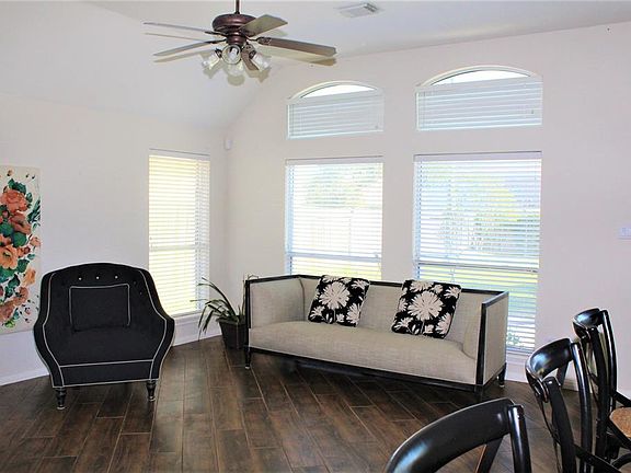 Windrose Master Planned Golf Course Community Gorgeous 3/2/2 home with huge fenced back yard and stone patio located on a cul-de-sac street. This home has wood tile floors throughout the living areas of the home. You will love the open concept living with a huge kitchen/breakfast area open to the family room with a gas log fireplace. The kitchen has gorgeous granite countertops and lots of cabinets. In addition to the 3 bedrooms the home has a study and dining room. The Master bedroom is huge with a spacious bathroom. Master bathroom has a separate shower from the garden tub and 2 sinks. Automatic Garage Door Openers! Washer, Dryer, and Refrigerator included KLein ISD Convenient to 2920, Grand Parkway(99), and I45. Great shopping close by too