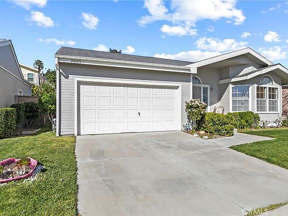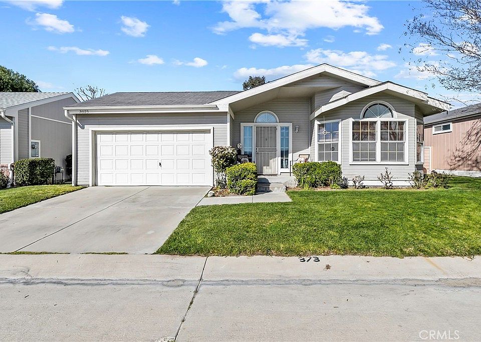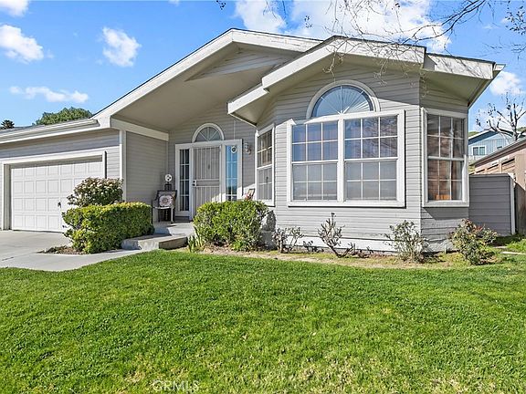 This home in Canyon View Estates faces the riverbed and offers panoramic views that stretch to the hills in both directions. The location offers quiet and privacy. This is a 3 BD, 2 BA manufactured home where you own the home and have a land lease. The kitchen has natural sunlight and newer appliances. There is a breakfast bar and plenty of cabinet space in the kitchen, which opens up to a beautiful dining area featuring large bay windows with a spectacular view. The open floor plan and vaulted ceilings create an inviting atmosphere. The family room features a fireplace and sliding glass doors to the backyard. The main bedroom also features sliding glass doors to the backyard as well as a large en-suite with a separate shower and tub. The yard is spacious and low maintenance. The laundry room offers extra cabinet space. There is direct access attached to the two-car garage. This home’s current monthly land lease will be $1,601.50 per month which includes community amenities, such as a 24-hour gate attendant, use of 2 pools and spa, basketball and tennis courts, and two play areas. Canyon View also offers a community clubhouse and RV storage. The home is located near parks, bike and walking paths, shopping and entertainment, and award-winning schools. Easy freeway and Metrolink access. Home is a must-see!