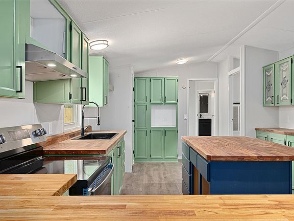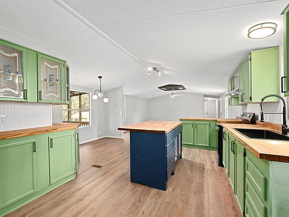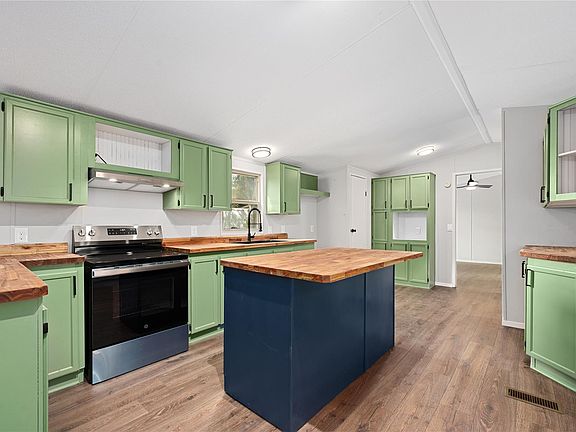 - Breakfast Bar, Ceiling Fan(s), Vaulted Ceiling(s), Double Vanity, Electric Dryer Hookup, Kitchen Island, No Interior Steps, Open Floorplan, Primary Bedroom on Main, Walk-In Closet(s)