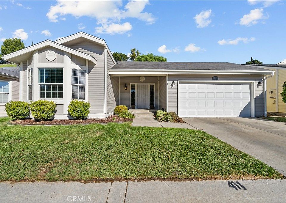 This stunning home is located in the quiet gated community of Canyon View Estate. Highly upgraded, largest floor plan in the community with 1845 square feet of living area. Spacious 3BD 2BA manufactured home with attached direct garage access. The home features newer paint, newer flooring, a cozy fireplace, and ceiling fans throughout. Walk into the spacious entry and you are greeted with the large open floor plan and vaulted ceilings. The beautiful kitchen is upgraded with stainless steel appliances, granite countertops, and a built-in microwave. A breakfast counter eating area makes the kitchen a great place the spend time. The primary bedroom features dual closets and slider doors that open up to a courtyard perfect for a relaxing and low-maintenance seating area. The primary bathroom has a remodeled custom tile shower, dual vanity areas, and a large soaking tub. There are two additional spacious bedrooms and a remodeled hallway bathroom. This home is located in Canyon View Estates and has a current monthly land lease of $1,726.61 per month which includes community amenities such as a 24-hour gate, usage of 2 pools and spa, 2 sport courts, and 2 play areas. Canyon View also offers a community clubhouse and RV storage. The home is located near parks, bike & walking paths, shopping & entertainment, and schools. Easy freeway and Metro-link access. Home is a must-see! Buyer to verify all before close of escrow.