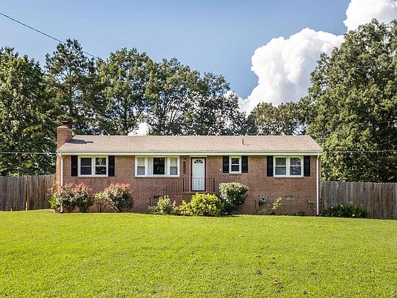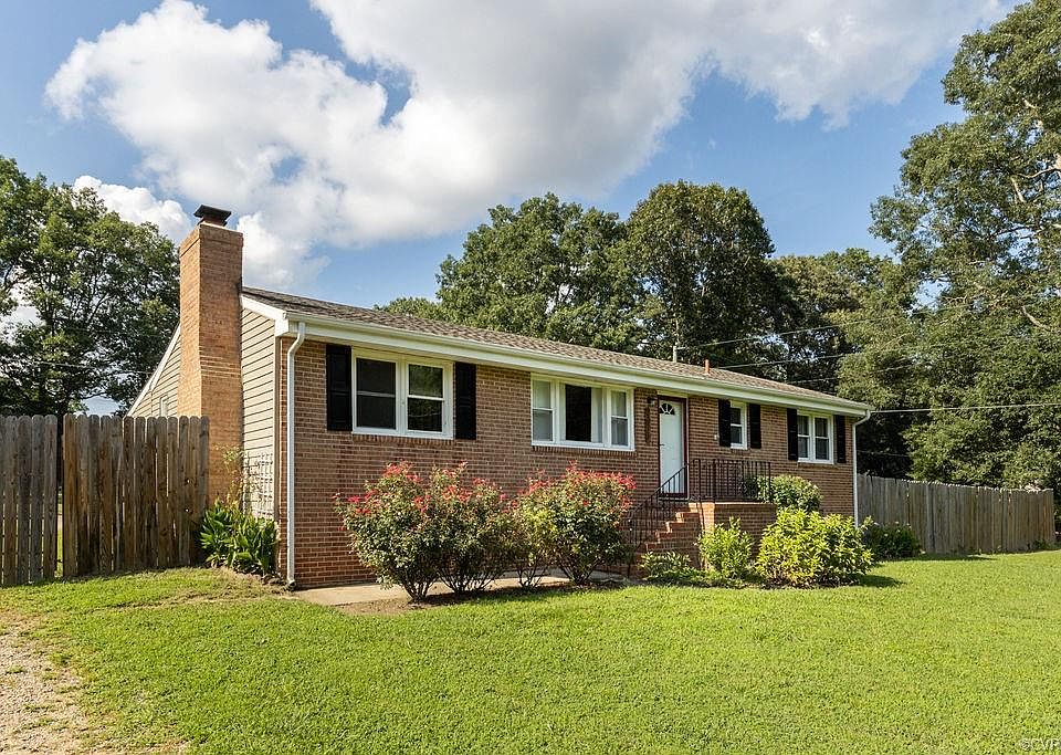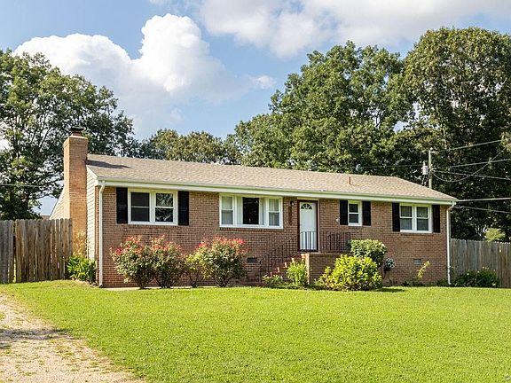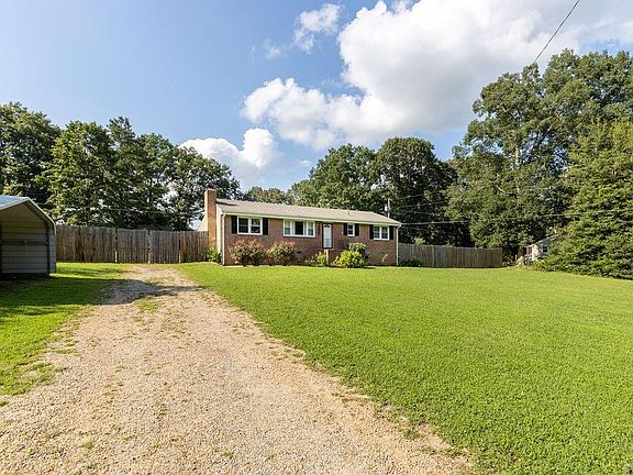 Welcome to this well cared for brick front ranch style home sitting on a 1 acre lot in beautiful Sutherland! This sun-filled home features 4 bedrooms, 2 full baths and 1780 sq ft of living space for under $250k! Easy one-level living features an oversized family room w/ cozy brick wood burning fireplace and hardwood floors, a spacious eat-in kitchen w/ breakfast bar and tons of cabinets for storage with lots of counter space, and bedrooms 2,3 and 4 with easy to care for hardwood floors! The owner's suite includes a spacious closet with ensuite bath which is located on the rear of the house separate from bedrooms 2,3 and 4 for additional privacy. Enjoy this tranquil countryside location with huge fenced backyard w/ shed, swingset and chicken coop. There's even a 2 car detached carport in the driveway! Conveniently located close to I85 and only 15 minutes from Ft. Lee. Don't miss this one...it won't last!