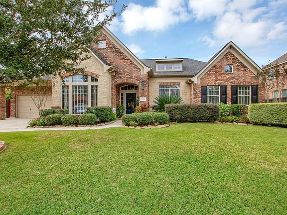 Simply amazing 1-story home that truly has it ALL! Gorgeous brick and stone front elevation w/ manicured landscaping, gas lantern & landscape lighting are just the beginning of the great curb appeal this home presents. Enter to find a pristine, well appointed and open floor plan. Double French doors lead to a study, which is currently used as a private media room. Fall in love with spending time preparing meals in this expansive kitchen w/ great counter space, breakfast bar & center island. Touchless kitchen faucet, stainless steel appliances, gas cook-top, walk-in pantry, plus pull-outs in the lower kitchen cabinets are just a few of the special features. Elegant hardwood floors in the master suite and one secondary bedroom. A complete outdoor paradise awaits, beginning at the covered back patio w/ outdoor kitchen, granite counters & bar seating. A fabulous pool/spa w/ beach-entry & water features. Detached pavilion w/solar shades, lighting and tv connections. A MUST SEE!