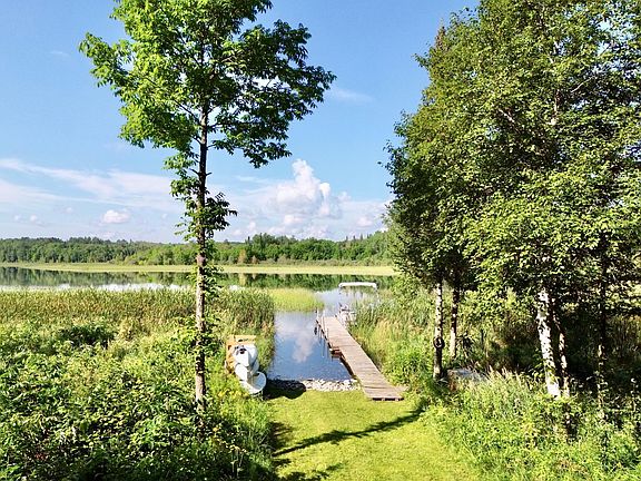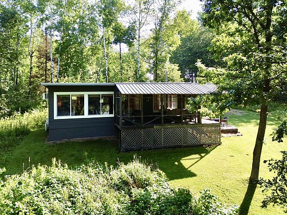 Welcome to your cozy Anderson Lake cottage! This 2 bedroom, 1 bath cabin has been tastefully updated for comfort and pride of ownership is evident. Newer roof, water heater, refrigerator, and several furnishings included! Located on 2.8 private acres, this cabin feels like you're truly on your own. You'll enjoy wonderful lake views and across the lake is state forest land. Anderson Lake is 23' deep with 9' clarity and loaded with bass, pan fish, northern and even a few walleye. No public access and only 5 private properties on the lake. This lot has the only boat launch on the lake. Take a swim off the end of the dock or the electric pontoon, both included in the sale! (Shore power available for convenient charging of boat) This charming retreat will have you dreaming of creating so many memories at the lake. Only 12 minutes to Itasca State Park as well as nearby ATV, snowmobile, and hunting opportunities nearby. This property is a gem, and you'll fall in love with the peaceful serenity and families of swans and loons to keep you company.