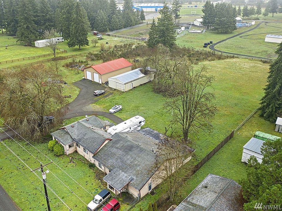 Home sits on 3.2 level ac. 2 large shops-2400 & 1800 sq ft. Fruit trees/hazelnut orchard. Room for livestock & gardens. Country feel, easy access to Centralia, Chehalis, & Oly in 20 min. Spacious 3654 sq ft, 1 level home w/ 2 living areas, 2 kitchens & large open living areas. Now used for 2-family living. Built in 1920s w/ lower addition added in '79 for a daycare biz then converted to living space in '12. Large covered patio for hot tub. Home needs some work but has great investment potential!