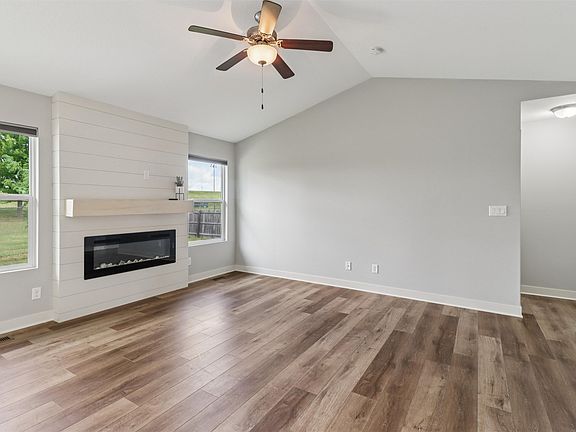 Welcome to your charming ranch retreat which features a vaulted family with a fireplace surrounded by shiplap. This 3-bedroom, 2-bath home beautifully blends classic style with modern comfort. The open-concept living area, filled with natural light from large windows, creates an inviting space for gatherings. Enjoy easy access to the patio and backyard, extending your living space outdoors. This ranch home truly offers the best of single-level living with the bonus of a finished lower level. This whole package is topped off with a 3 car garage. Elementary School for the little ones is just two blocks away. New Microwave and Washer.