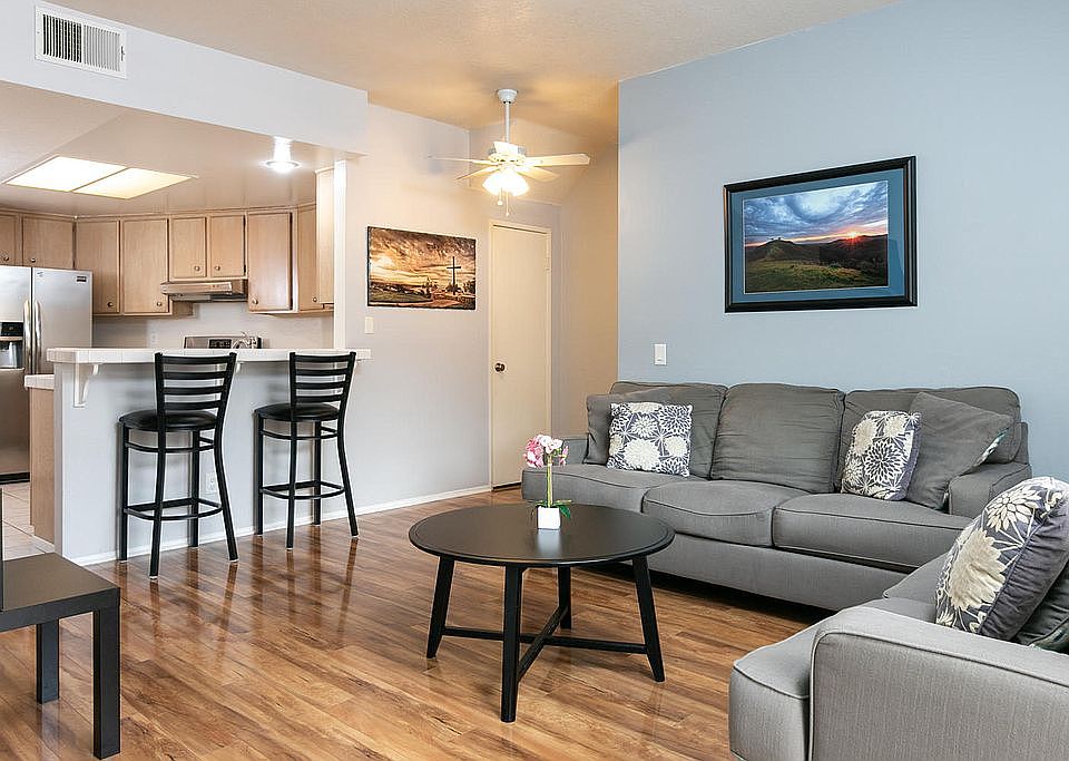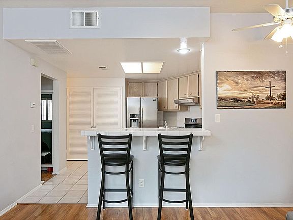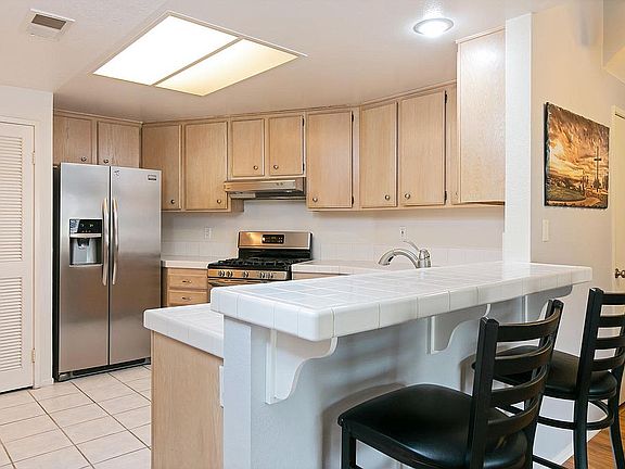Welcome to this comfortable one bedroom, one bathroom unit in the Las Brisas complex in North Oxnard! This single story is a perfect starter home that is move in ready! Upon entry you will note the beautiful laminate 'wood like' floors, open living space into the kitchen. Kitchen includes Frigidaire gallery stainless steel appliances with newer dishwasher, 5 burner range stove, replaced range hood, side by side refrigerator, Moen faucet, and a breakfast bar! Bathroom has been recently updated with new floor tile, deep soaker tub with upgraded shower head with 5 modes, matching tub spout & valve, and tastefully designed tile shower, a replaced vanity, new wall mirror, new cabinet, new ceiling exhaust fan, and top Moen sink faucet! Your comfortable bedroom has ceiling fan with light, few years old carpet, and plantation shutters! This condo includes indoor laundry area, private front porch, and direct access one car garage! Low HOA dues of only $266/month! Don't miss this one! See it today!
