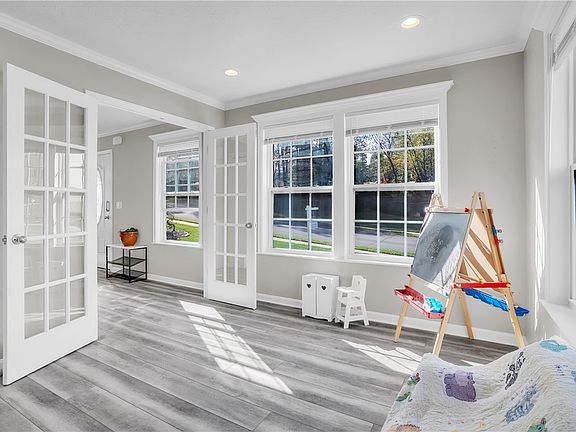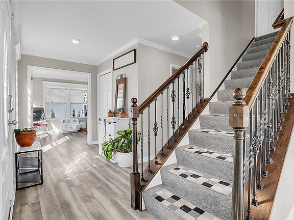 Nestled in the established Clairmont Manor community of Hopewell Twp, this beautifully crafted 4-bedroom, 2 full & 2 half bath home sits on an end lot with woods and no neighboring homes to the side, offering added privacy and peaceful views. Inside, you’ll find elegant crown molding, stylish upgrades, and an abundance of natural light throughout. The first floor features a spacious eat-in kitchen with a large island, a den with french doors ideal for an office or playroom, a formal dining room, and a generous living room. The kitchen opens to a lovely deck, perfect for outdoor entertaining & relaxation. Upstairs, the primary suite offers a walk-in closet and bathroom with double vanity sinks, along w/ a laundry room conveniently located in the hallway. The finished walk-out basement adds additional living space and a half bath. Enjoy the charming sidewalks and a true community feel—plus, ice cream & mini golf are just a short walk away! Close to I-376, PGH Airport & Hopewell Schools.