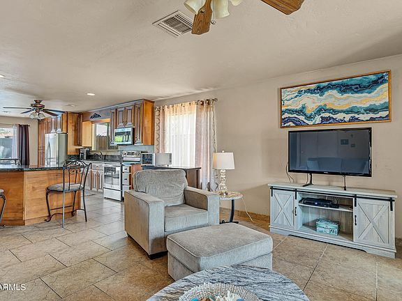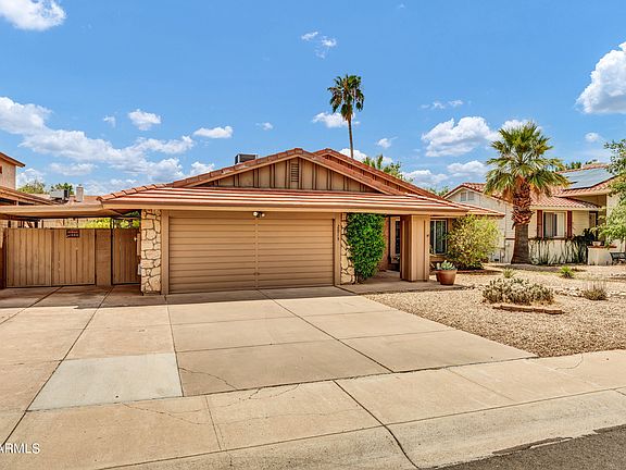 DELIGHTFUL HOME WITH UPGRADED KITCHEN AND GREAT ROOM AND A POOL IN A QUIET NEIGHBORHOOD WITH NO HOA. Open floor plan that flows beautifully from entry to the pool patio. Granite Kitchen counters, upgraded cabinetry and kitchen island make this ideal for entertaining. Tile flooring throughout except 3 non-primary bedrooms are freshly carpeted. The covered patio has access from both the kitchen and the primary bedroom. The patio overlooks the play pool and the surrounding area with mature queen palms and lush plantings that provide privacy. Easy-care back yard is mostly covered by pavers. The roof was totally replaced in March of 2022. Great location close to SR51 and easy access to SR101 and I-17. 15 minutes to downtown Phoenix and Sky Harbor Airport.