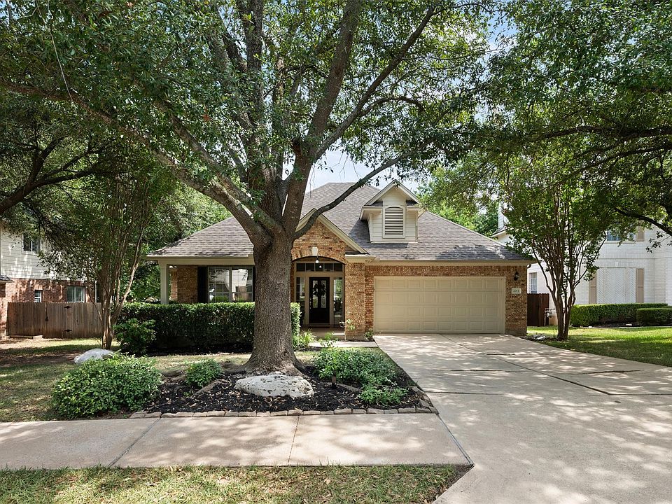 Lovely 1-story, 3 bedroom plus office on quiet, tree-lined street in highly desirable Round Rock location. Terrific price point for this well-maintained, 4-sides brick home perfect for owner occupant or investor! Wonderful, open floorplan with high ceilings, tons of natural light & neutral color palette throughout. Spacious family room with vaulted ceilings, inviting fireplace & attractive laminate wood flooring. Large formal dining / secondary living space. Good-sized office with French doors off foyer. Open kitchen with tile backsplash & large breakfast room overlooking the backyard & expansive deck area. Nice MIL plan with large & secluded primary bedroom & primary bath with dual vanity sinks, garden tub, separate shower & walk-in closet. Recent carpet & paint in family room, kitchen & primary bath. Great outdoor space the huge deck & private backyard. Roof replaced in 2022. Wonderful community amenities including playscape, pool, tennis & pickleball courts, sand volleyball court, basketball courts & miles of beautiful hike & bike trails. Highly rated RRISD school district & zoned to nearby Old Town Elementary, Walsh Middle School & Round Rock High School. Convenient to I-35, tolls, & popular shopping & dining.