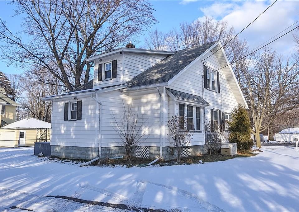 Open floor plan. 2/3 bedrooms. Good size kitchen. Living room with pillars. Updated full baths on both levels. Enclosed heated front porch. Newer flooring. House generator! Detached 2-story garage has lots of space & potential!