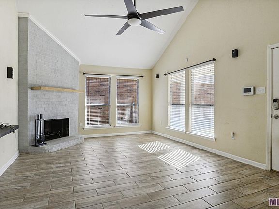 This home is very conveniently located near I-12, shopping, restaurants, and more! It features 9’+ ceilings in both the living room and master bedroom, and an open concept, giving it a very spacious feel. It also features tile flooring throughout the home with quartz countertops in the kitchen and granite countertops in the bathrooms. The living room includes a wood burning fireplace and many windows to let in natural light. Light, neutral colors throughout the home. Both the master bedroom and secondary bedroom each contain 2 closets, with the master having a walk-in closet. In the hallway bathroom, the toilet and tub area are separate from the sink. The master bathroom’s tub has been replaced with a walk-in shower and floor to ceiling tile on the walls. This home also offers a spacious two car garage for full size vehicles with additional room for tools and lawn equipment. The yard is fully fenced in and has a gate separating the front and back yards, both containing generous patio space. New HVAC system installed in 02/21 and a fresh exterior repaint in 08/22. This is a great home in an excellent location in a quiet neighborhood.