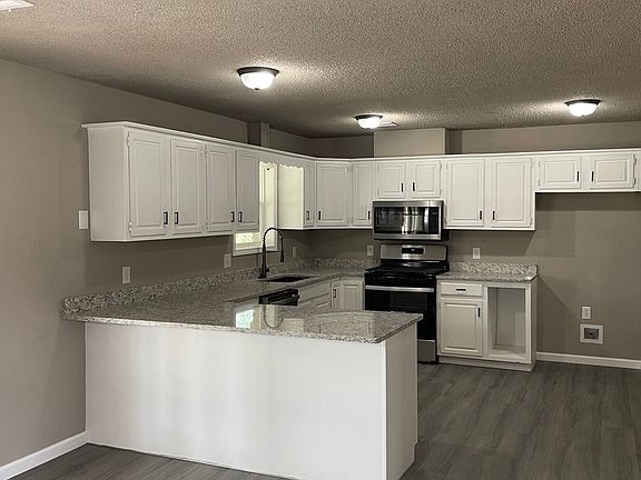 Great family house outside city limits in a quiet neighborhood that is 1740 square feet. Complete makeover! Sits on a .45 acre lot with a nice 2-story shop on the back of the property with electric. The home is nearly full brick with some vinyl siding, and a metal roof and features all new: windows, heat/air, hot water heater, stainless steel appliances, granite countertops, fixtures, waterproof laminate hardwoods, tile, carpet, bathroom vanities, ceiling fans/lights, chandelier, French doors and paint. The garage has been converted to a second master suite with two closets and a private bath was added to make it a 4-bedroom, 2.5 bath with a large living room and a remodeled kitchen that has been opened up for more room. Out back you'll enjoy the scenery and quietness under a large covered patio. A very quiet street and neighborhood outside of town.