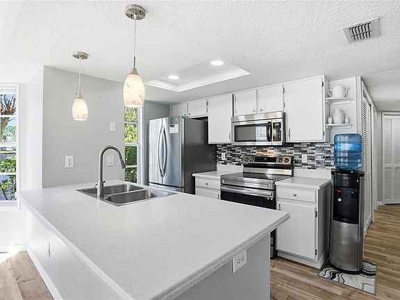 One year of HOA's paid at closing with fair offer. Welcome to this beautifully updated 3-bedroom, 2-bath end unit in the sought-after Royal Palm Bay community—just minutes from Disney, shopping, dining, and world-class golf. This light-filled condo boasts serene pond, fountain, and wooded views, best enjoyed from the oversized bay window in the dining area or the additional windows exclusive to end units. Inside, you'll find a bright, open layout with rich wood flooring, spacious living areas, and walk-in closets. The remodeled bathrooms and updated kitchen feature modern fixtures, a large chef’s sink, stainless steel appliances, and a built-in wine cooler—perfect for entertaining or relaxing in style. Offered furnished with tasteful, neutral décor—just bring your suitcase! Enjoy resort-style amenities including a clubhouse, tennis and volleyball courts, playground, BBQ area, and lush tropical landscaping. Zoned for short-term rentals, this property is ideal as a vacation home, income generator, or full-time residence.
