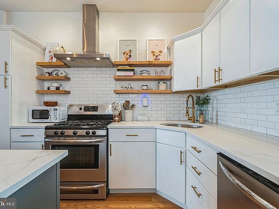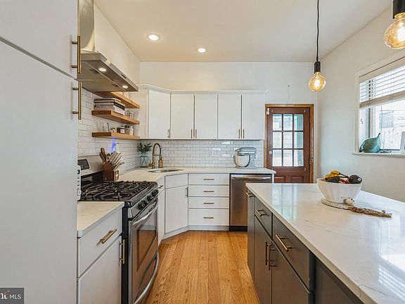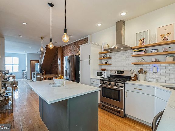 Beautifully maintained and improved 3 bedroom 1.5 Bath townhome in the awesome Pennsport neighborhood in Philadelphia. Entering through a double door foyer, you are greeted by a beautiful living room complete with a large bay window streaming natural light and natural hardwood flooring. With the open, straight through floor plan the cozy dining room shares space with a stunningly large kitchen featuring white wood cabinetry w/brushed gold hardware, natural wood shelves, large island, Quartz countertops, brushed gold goose neck faucet, upgraded SS appliances, incl. refrigerator, and chimney hood over the gas range/oven. The access to the rear yard is off the kitchen, The 2nd floor offers 3 spacious bedrooms with ample closet space & a lovely 3 pc bath. The basement is full size with a laundry area, including Speed Queen washer and dryer, newer mechanicals. Basement walls refinished in the last 3 years. See Seller Disclosure for update details. Close to all major highways, shopping and transportation this lovely home is conveniently located. Schedule your tour today!
