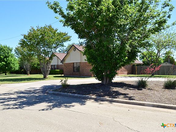 FOUR BEDROOMS, TWO FULL BATHS, TWO DINING AREAS, TWO CAR SIDE-ENTRY GARAGE, IN-GROUND POOL, IN-GROUND SPA, CONCRETE CIRCULAR DRIVEWAY, OVER HALF ACRE CORNER LOT HAS BEAUTIFUL CURB APPEAL WITH MATURE LANDSCAPING, 9' 5" X 6' 8" COVERED FRONT PORCH, IN-GROUND SPRINKLER SYSTEM, WOOD PRIVACY FENCE This home has been refreshed with a new roof, new paint inside and out, new water heater, new front door, new garage door, and new carpet. The kitchen has a stainless dishwasher and has been updated with a new stainless range, new built-in microwave, and new refrigerator. There is a large dining area in the kitchen, and a formal dining room that could be used as a second family room instead. The family room has new carpet and a cozy wood-burning fireplace with mantle and hearth. Flooring is tile, parquet wood, and new carpet in the living room and bedrooms. The master bedroom has a walk-in closet and private full bath with a tub/shower and new granite countertop. The second full bath has new cabinet with stone countertop and new flooring. All bedrooms, the family room, the everyday dining area, and the formal dining room have ceiling fans. From the 12' X 16' covered patio, enjoy the huge, private back yard that has mature trees, a wood privacy fence, and an in-ground pool and separate in-ground spa with decking. Attached to the covered patio is an uncovered 12' X 16' open concrete patio for the grill, making the back yard perfect for entertaining and relaxing. There is a quality-built 15' 10" X 10' storage shed with a window and metal roof. Come home to comfort, yet be a short commute to Fort Cavazos, Stillhouse Lake, and the surrounding areas and conveniences. It is about an hour's drive to Austin. Please visit the virtual tour for videos of this home and the back yard oasis.