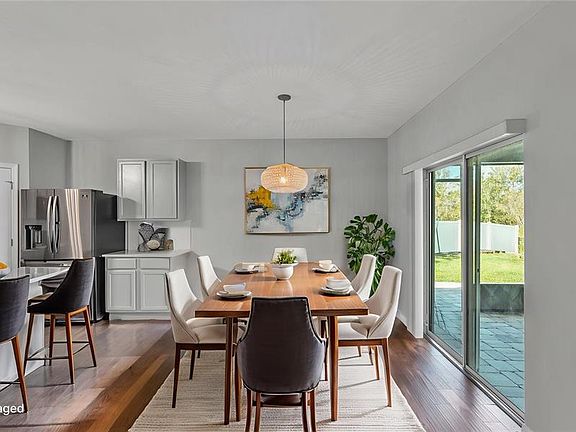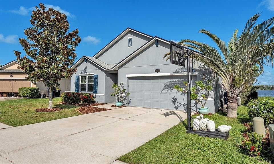 One or more photo(s) has been virtually staged. This beautiful LAKE HOUSE on Lake Van features a desirable split floor plan with an open-concept kitchen and living area filled with natural light. Offering 4 bedrooms and 2 full baths, the primary suite includes a private en-suite bathroom for a comfortable retreat. Thoughtfully updated throughout, the home showcases an upgraded kitchen with stone countertops, a large island, and modern finishes, complemented by engineered hardwood floors and a newer roof. Step outside to your private, fenced backyard—complete with banana trees and a beautiful enclosed patio overlooking Lake Van. It’s the perfect space for family BBQs, entertaining guests, or simply enjoying serene evening sunsets. Located in a welcoming community with a playground, this home offers the best of both worlds: peaceful neighborhood living and convenient access to I-4, ideally positioned between Tampa and Orlando for easy commuting. Shopping, dining, and everyday conveniences are just minutes away.