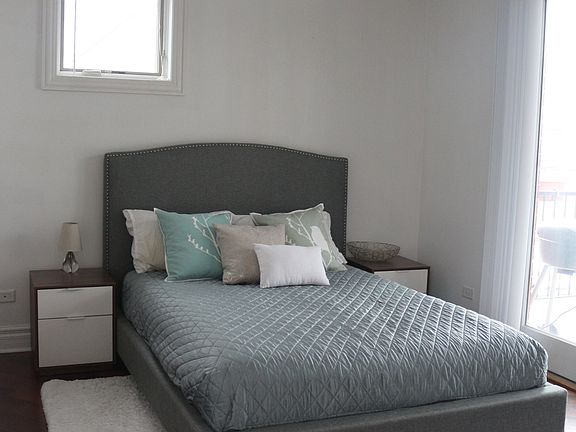 Sunny and modern West Town 2BD/2BA with garage pkg and tons of outdoor space! Open floor plan with upgrades throughout... cherry HW floors, custom lighting, wired for TV and sound. Gorgeous slate fireplace, SS appliances, granite counters, soft-close drawers. Stone Master Bath with jetted whirlpool and glass shower with body sprays. In-unit W/D and extra storage space. Large deck with access from Master and hallway. Plus huge 20x20ft rooftop deck! 1 blk from Mariano's, CTA, steps from dining and hotspots. Available May 1st. No pets, no smokers. Open House Sunday 3/29 12 - 3pm No pets, no smokers