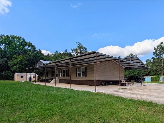 Nestled on nearly 12 acres of partly cleared land, this property offers an exceptional blend of space and functionality. Perfectly suited for those seeking a peaceful retreat with ample room to grow. The well-maintained mobile home has generous living space of 2,040 square feet. Featuring 4 bedrooms and 2 bathrooms, it ensures sufficient room for family, guests, or even a dedicated workspace. There is a concrete patio surrounding three sides of the structure giving you plenty of parking. The metal roof also extends 12 feet off the house and over the concrete patio making it ideal for gatherings, outdoor cooking and dining, etc. Beside the house is a shop with electricity; perfect for anyone needing a small workshop. The home is strategically set back more than 800 feet from the road and behind a small pond. This property also backs up to a large undeveloped tract of timber land, giving you privacy and plenty of deer for the sportsman. Call today to schedule your tour!