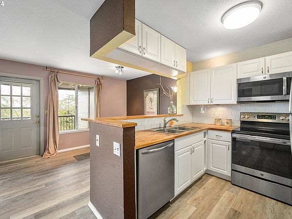 Welcome to your ground level condominium with no stairs and a seasonal view of MT Hood! Nestled within a coveted community with breathtaking views, this two-bedroom, two-bathroom condominium offers comfort and style. The updated kitchen includes newer stainless steel appliances and butcher block countertops. Get ready to enjoy the wood Burning fireplace that provides ample warmth to the entire home! You will be conveniently located close to the bus lines, Mary S Young park and shops. Swim in the outdoor pool in the Summer and workout in the weight room all year. Sip your morning coffee on the private balcony as you bask in the beauty of panoramic views stretching as far as the eye can see. This is the perfect spot to unwind after a long day or to entertain guests against a backdrop of stunning sunsets. HOA includes so much: cable, internet, water, sewer, garbage, pool, fitness and more!