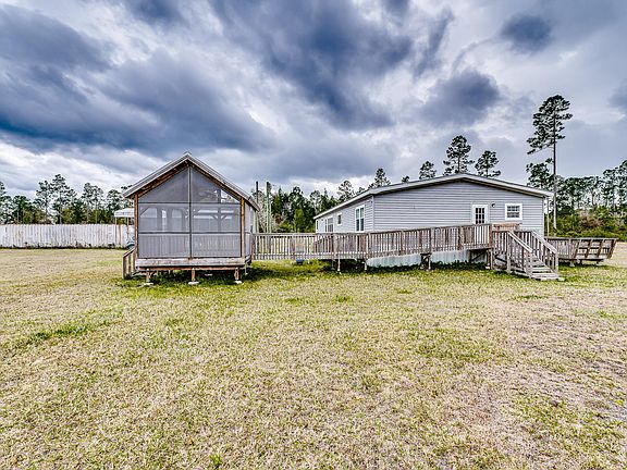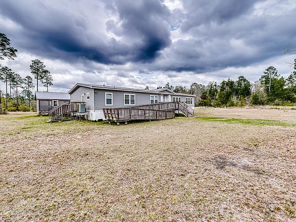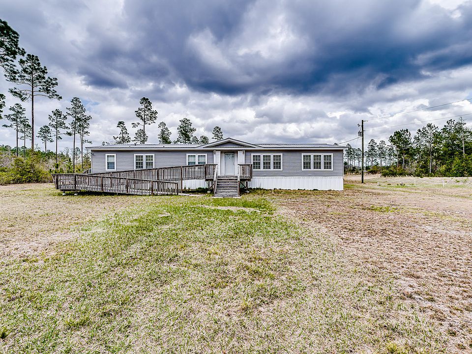This meticulously maintained mobile home is situated in the middle of 10.14 beautiful acres! Offering a split floor plan with spacious bedrooms, family room with built-in entertainment center, eat-in kitchen with a walk-in oversized pantry, and laundry room. Outside you will find the home is wheelchair accessable to the front as well as the back that leads to the 12x16 enclosed screened-in porch. A stocked pond, two wells (one for irrigation), poll barn, and two storage containers. Come see for yourself!