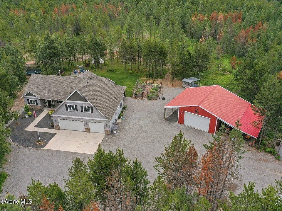 Your North Idaho dream home awaits on 5+ stunning treed acres! This one story rancher has everything, and is 100% turn-key ready! 3 bedrooms & 2 bathrooms on main level, and a huge BONUS room w/ half bath upstairs. Spacious rooms, tasteful finishings, laminate floors, and high ceilings. Enjoy an open floor plan w/ large kitchen & island, stainless gas appliances, and granite countertops. Oversized master w/ view and beautiful bathroom with large tiled shower, dual vanity, and walk in closet. Covered front and back patios, a hot tub, fire pit, treehouse and tee pee! Large garden w/ hydrant, irrigation, greenhouse, and cute chicken coop w/ fenced yard. 24x36 insulated and heated SHOP w/ loft storage, 6x7 walk-in meat cooler, 10 ft lean-to, 22 ft lean-to! Full RV Hookups! Generator installed and included! High speed internet (Spectrum)! Lots more continued... Other features: Covered and uncovered RV/Boat parking, RV Pad, Shop has built in storage and meat processing counters near meat cooler. Large fenced orchard with fruit trees (apple, nectarine, plum, pear, and cherry.)