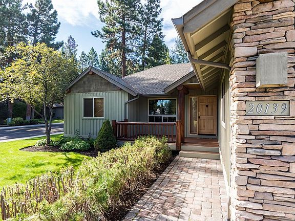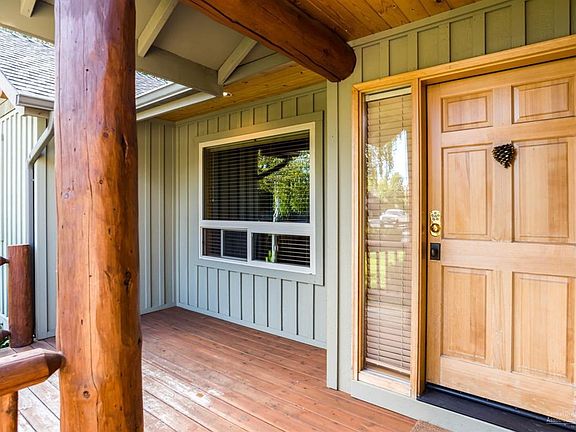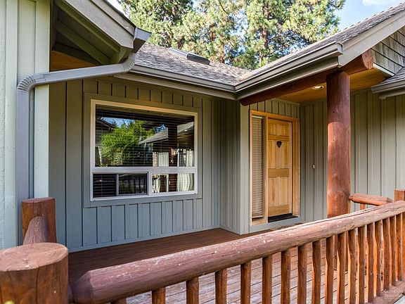 SINGLE level lodge style home located on a nice interior corner lot in desirable Mountain Pines built by Schumacher Construction. Inviting covered front porch. Amenities include great room floor plan with vaulted wood ceilings & log beam accents, a stacked stone gas fireplace with mantle. Wonderful master and auxiliary bedroom separation with pine trim doors. Kitchen features include slate flooring, some stainless appliances, tile countertops and knotty alder cabinets. Mountain Pines is situated along the 5th fairway of Bend Golf & Country Club. Quiet location, close to shopping, schools and parkway.